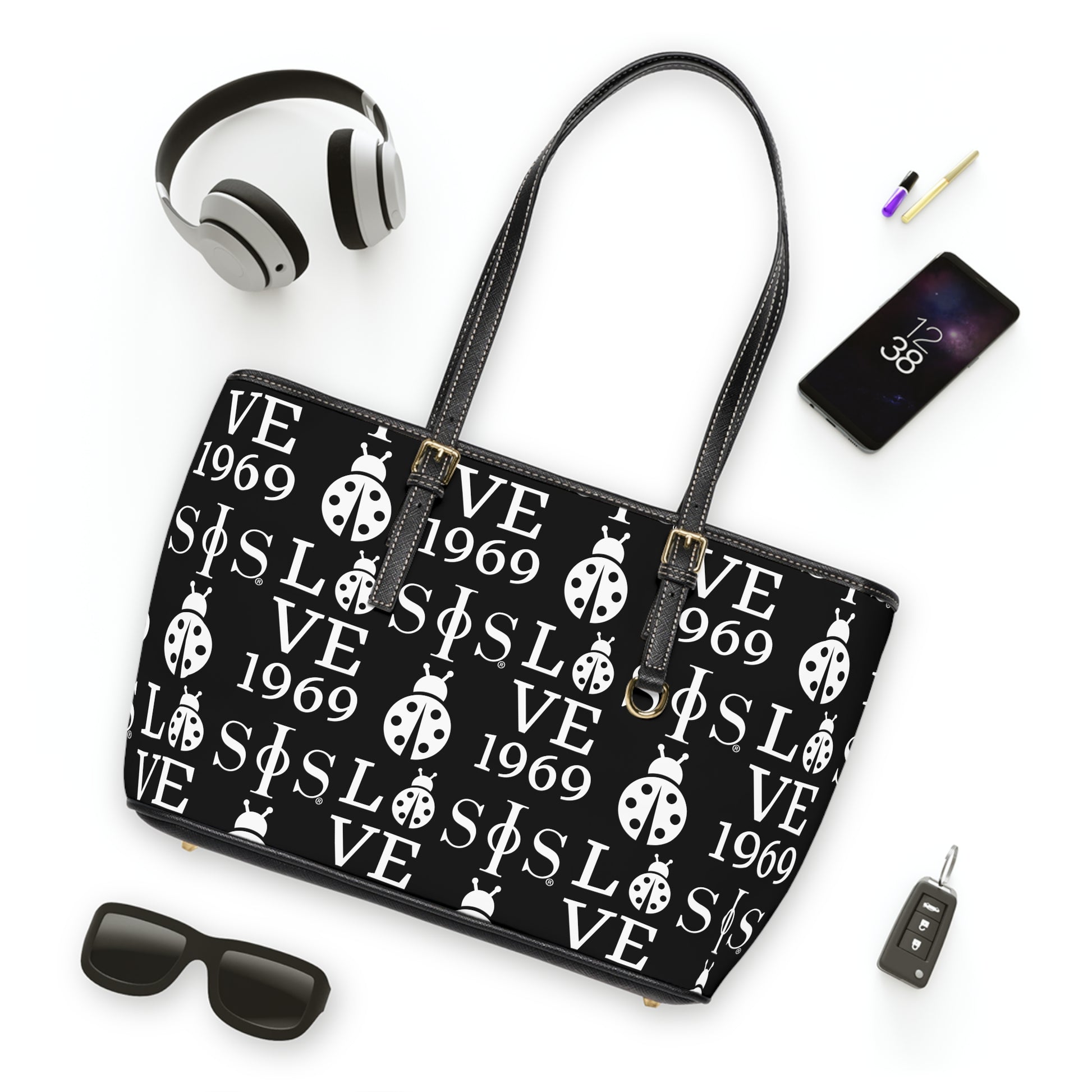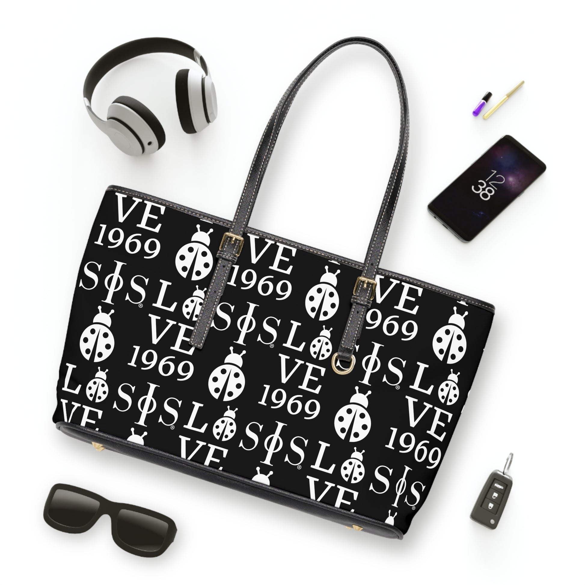 Swing Phi Swing Patterned PU Leather Shoulder Bag Black